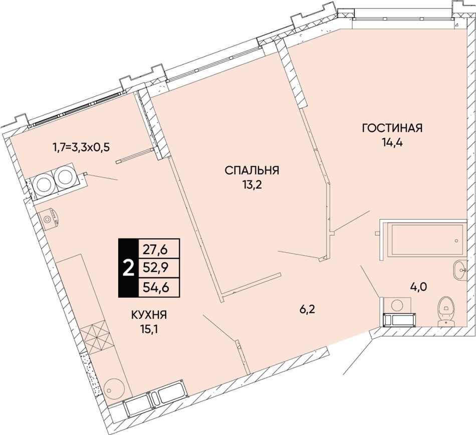 2-комнатная — 54,6 м² 20/22 эт. в Левобережье