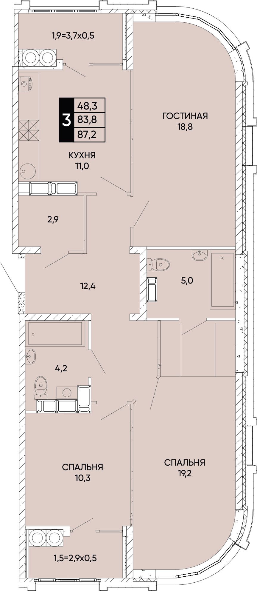 3-комнатная — 87,2 м² 20/22 эт. в Левобережье