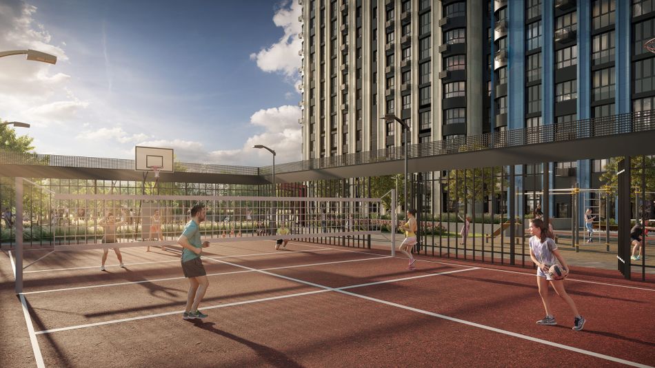 Концепция “двор без машин” создана для безопасности детей и питомцев. Детская площадка для разных возрастов, созданная при участии детских психологов. Для активного образа жизни во дворе будут тренажеры и спортивная зона, а для умиротворенного отдыха - чилаут-зона.