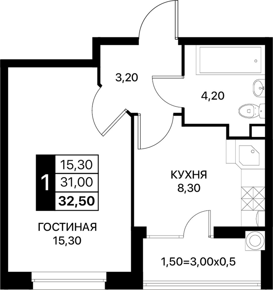 1-комнатная — 32,5 м² 2/20 эт. в Smartpolét (Смартполёт, Полет)