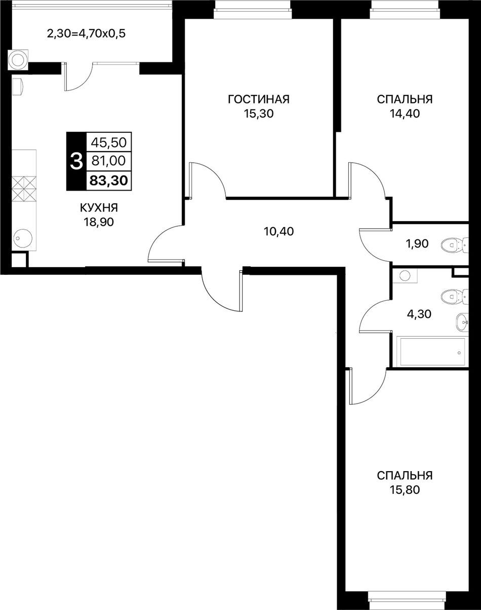 3-комнатная — 83,3 м² 2/20 эт. в Smartpolét (Смартполёт, Полет)