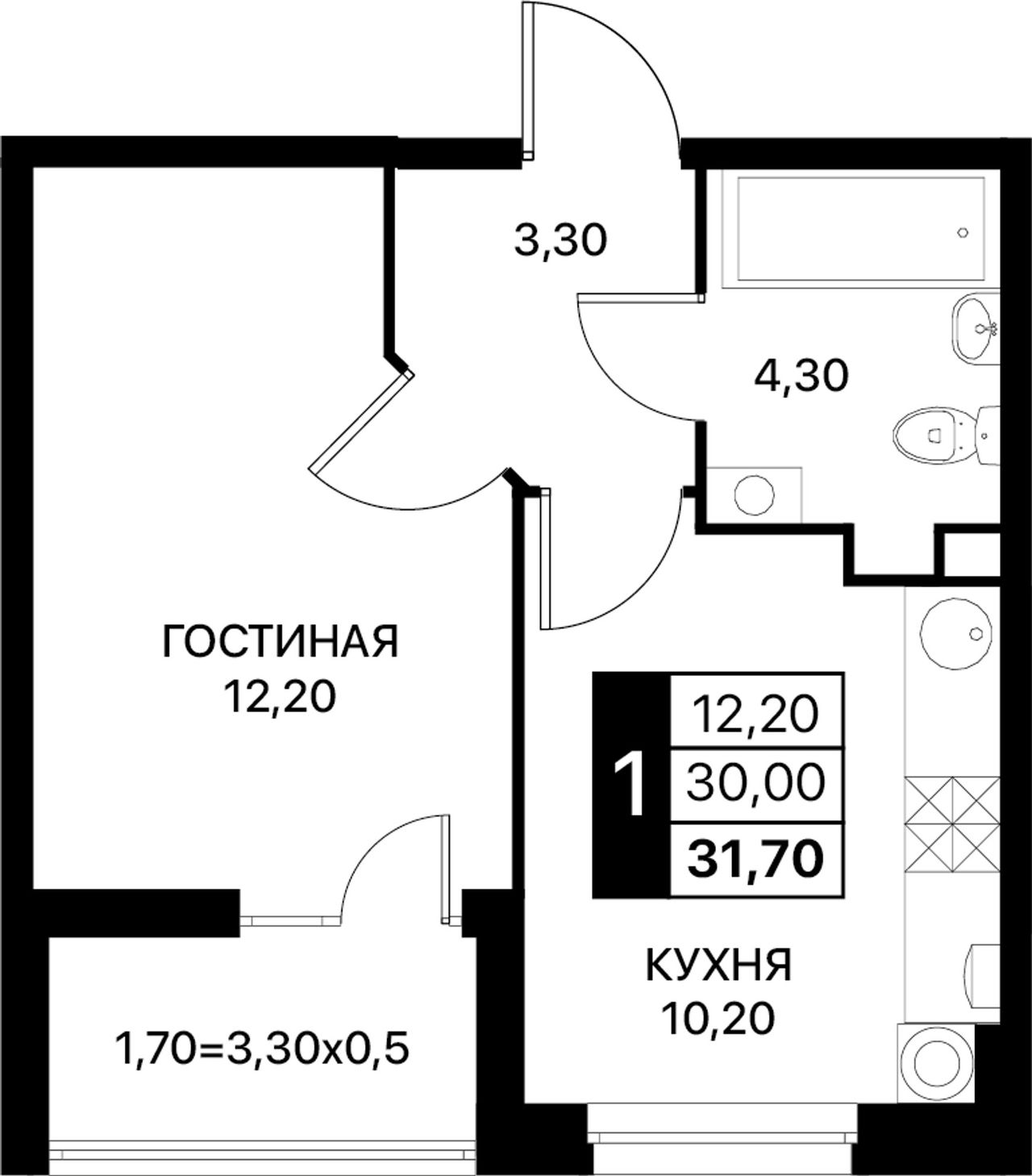 1-комнатная — 31,7 м² 2/20 эт. в Smartpolét (Смартполёт, Полет)