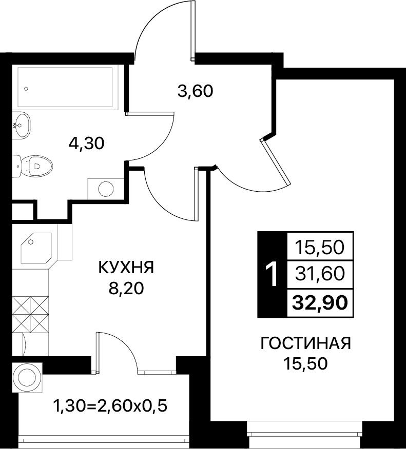 1-комн. | 31 - 46 м² | 4,5 - 8,3 млн ₽ |
