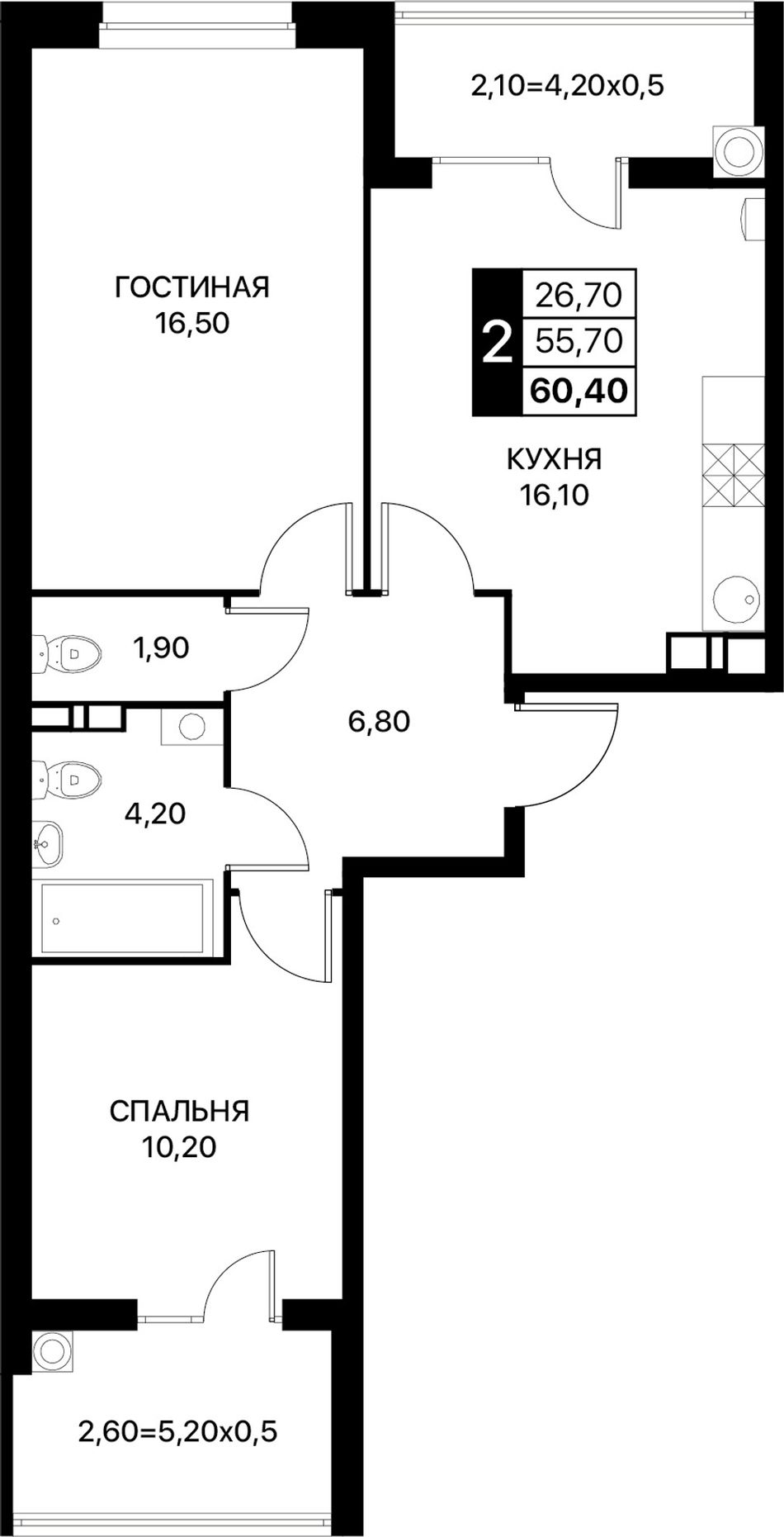 2-комнатная — 60,4 м² 7/20 эт. в Smartpolét (Смартполёт, Полет)