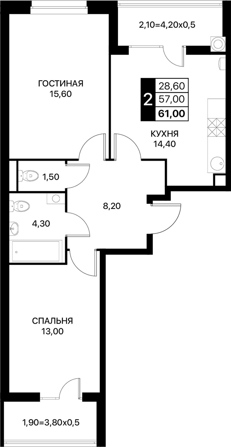 2-комнатная — 61 м² 2/20 эт. в Smartpolét (Смартполёт, Полет)