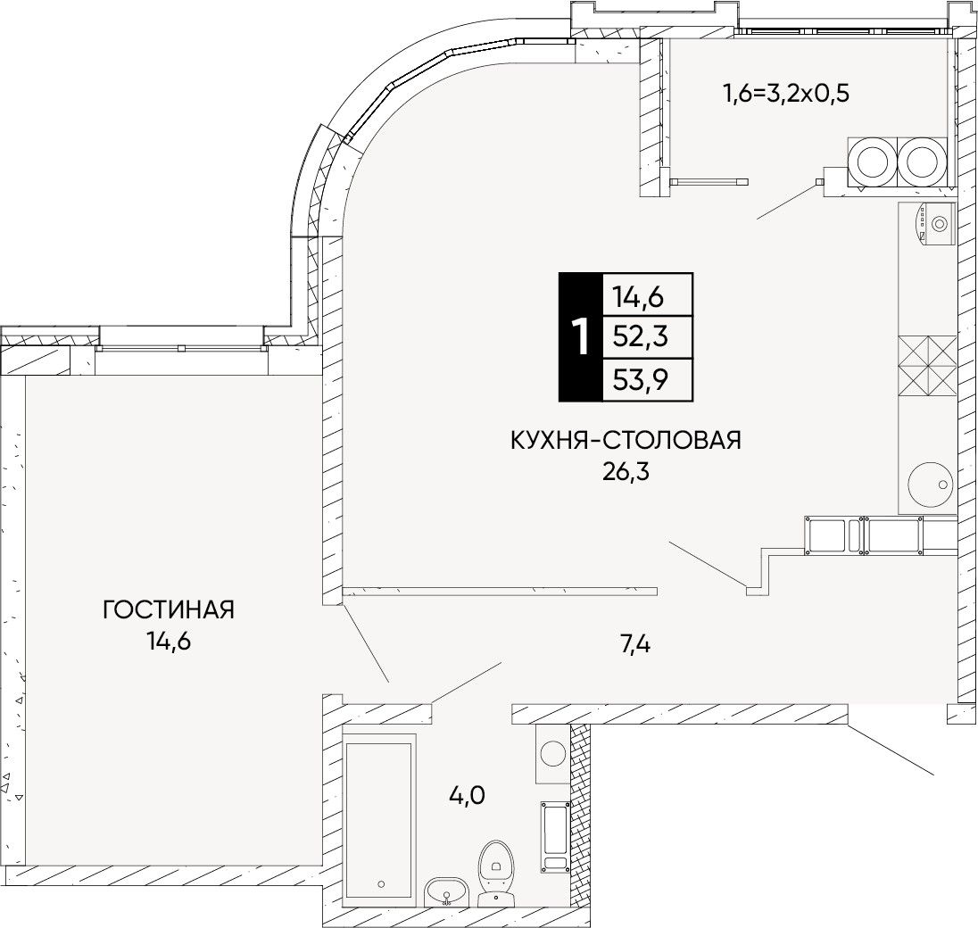 1-комнатная — 53,9 м² 18/24 эт. в Левобережье
