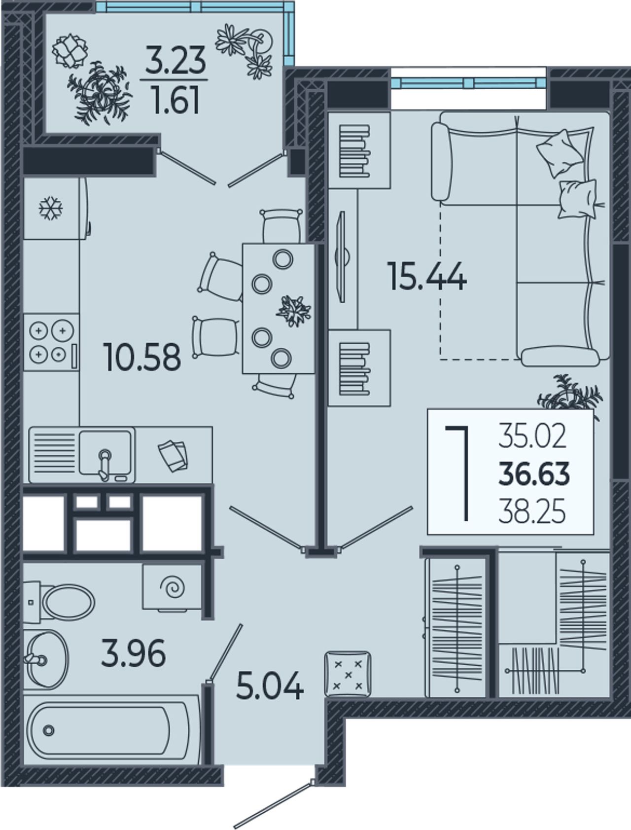 Общая площадь36,63 м²