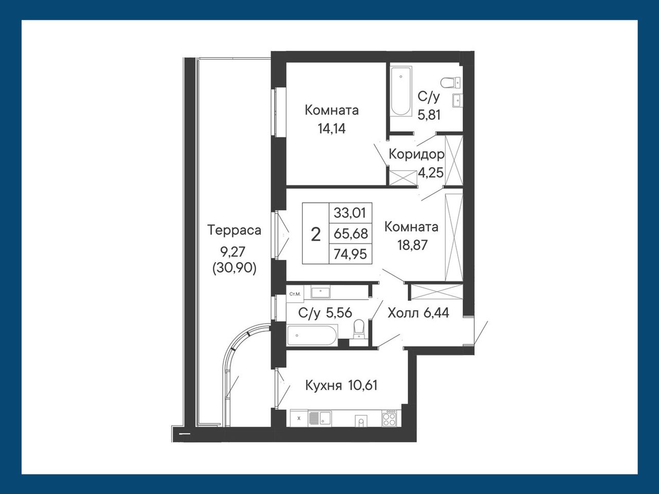 2-комнатная — 74,95 м² 2/8 эт. в Ривьера