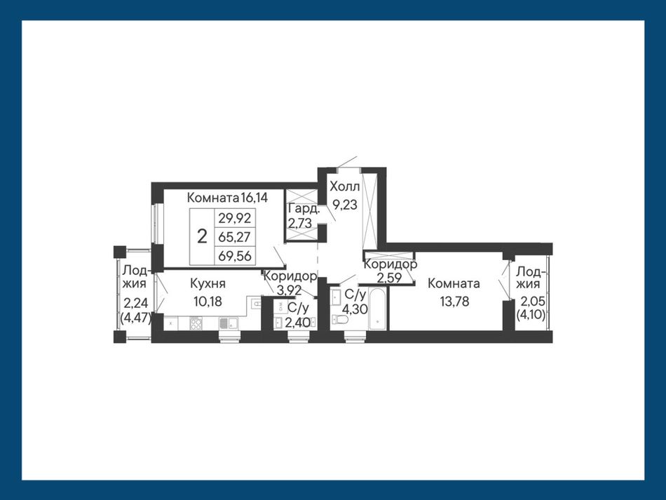 | 2-комн. | 64 - 78 м² | 8,4 - 9,2 млн ₽ |
