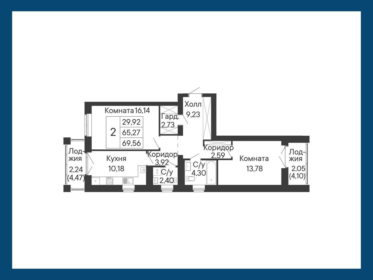 2-комнатная — 69,56 м² 7/8 эт. в Ривьера