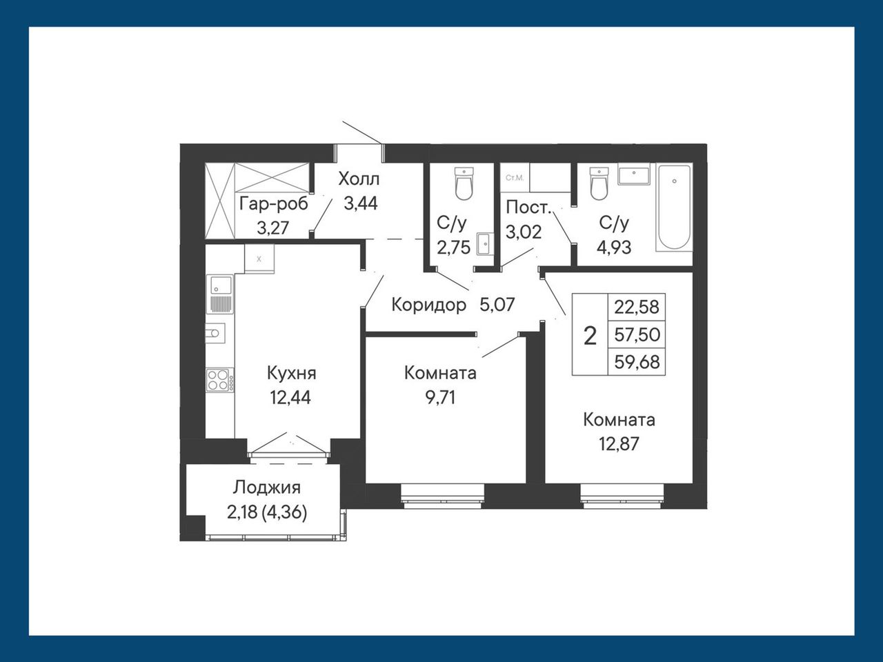 Общая площадь59,68 м²