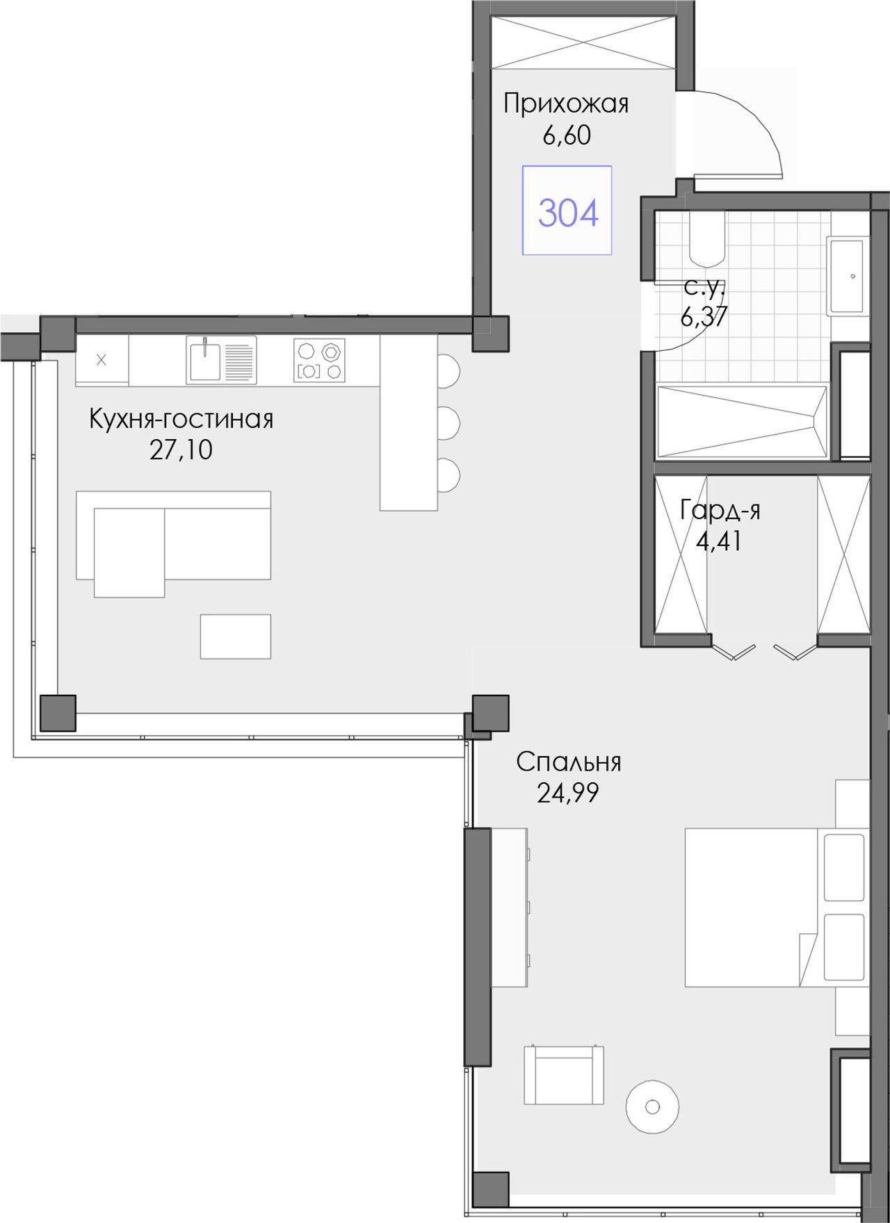 2-комнатная — 69,47 м² 3/13 эт. в BERIY PALACE (БЕРИЙ ПАЛАС)