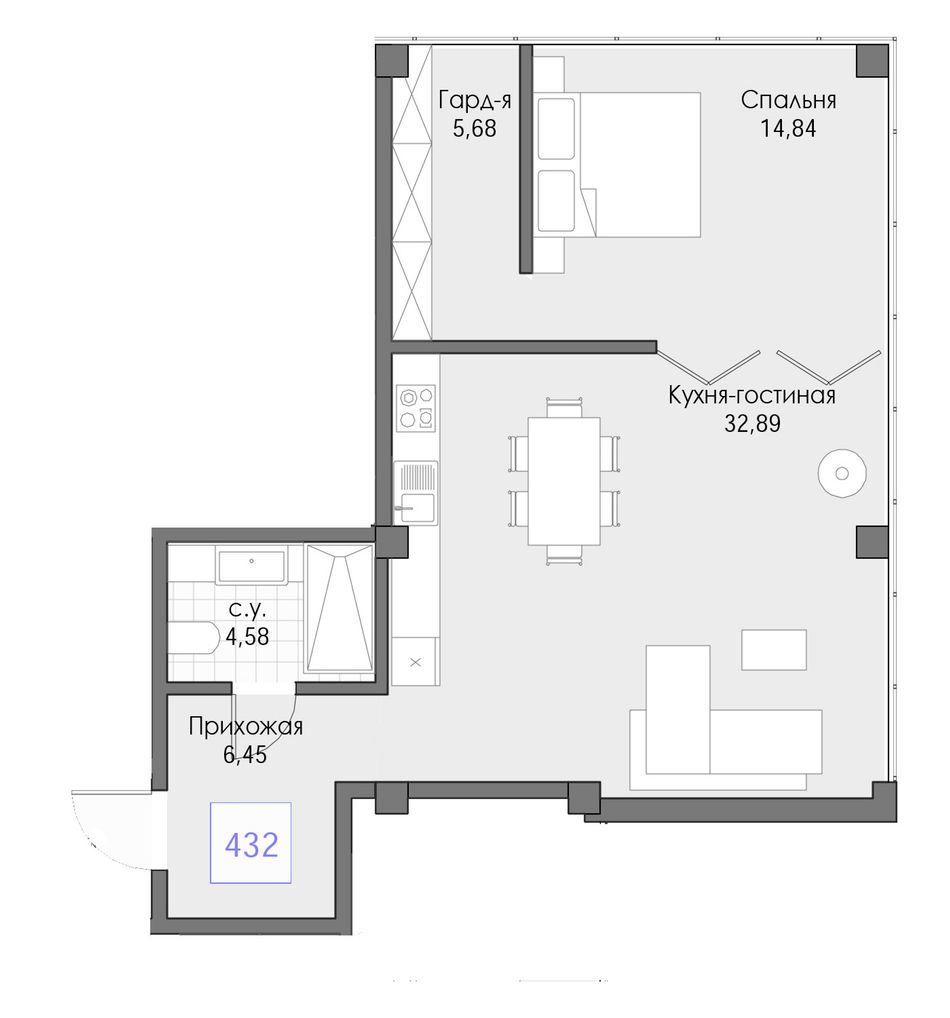 2-комнатная — 64,43 м² 4/13 эт. в BERIY PALACE (БЕРИЙ ПАЛАС)