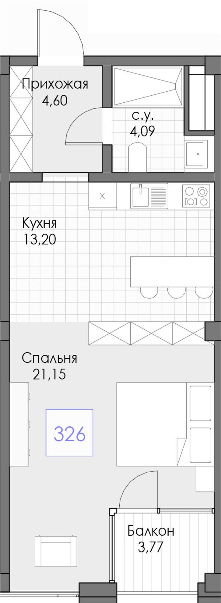 1-комнатная — 46,81 м² 3/13 эт. в BERIY PALACE (БЕРИЙ ПАЛАС)
