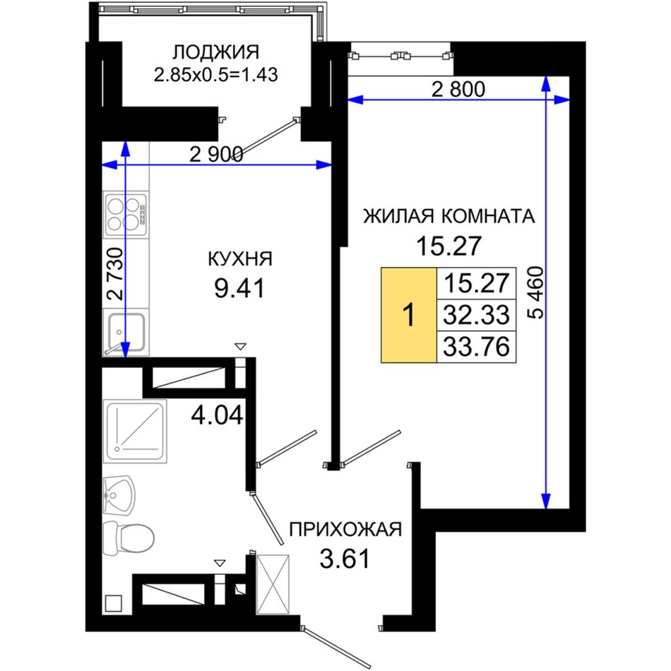 1-комнатная — 33,76 м² 14/25 эт. в Октябрь Парк