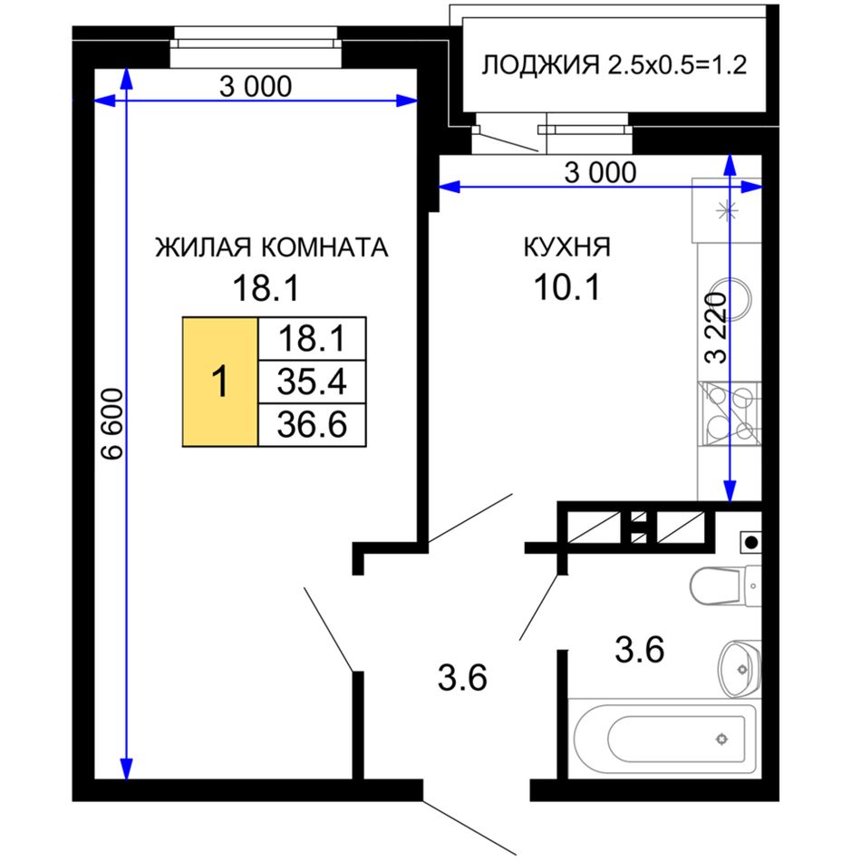 1-комнатная — 37,25 м² 13/16 эт. в Дыхание