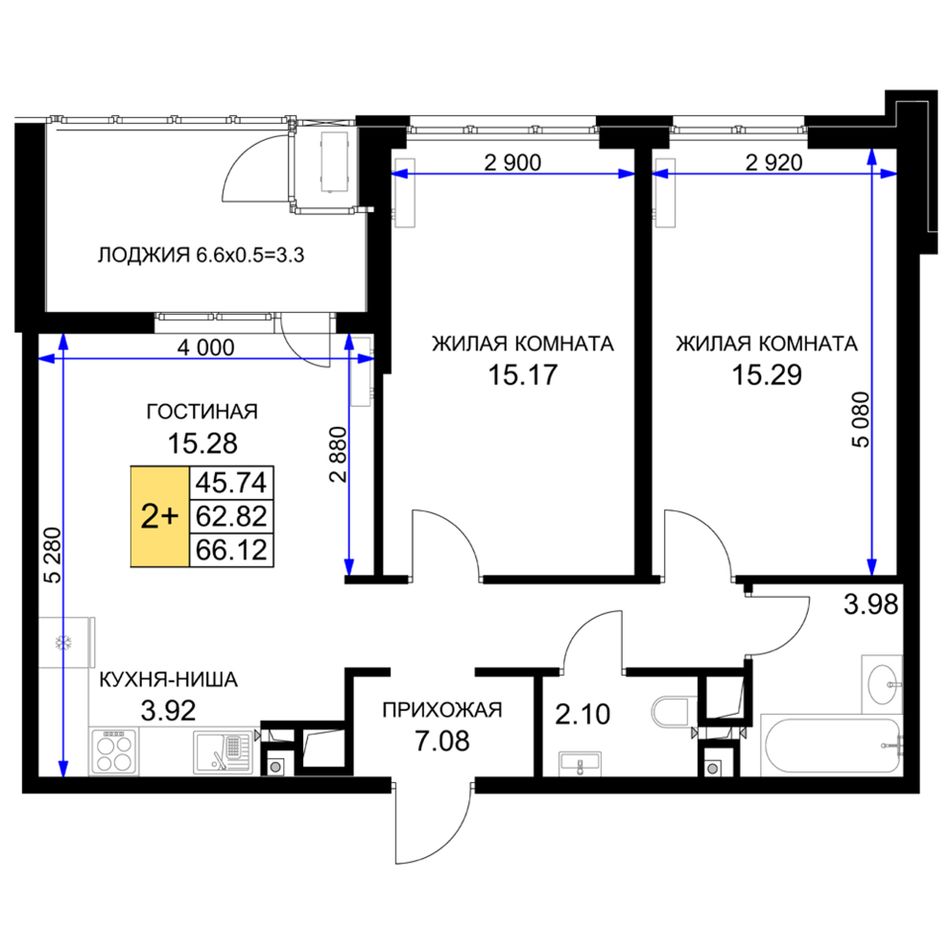 | 2-комн. | 66 - 84 м² | 27,3 - 34,8 млн ₽ |