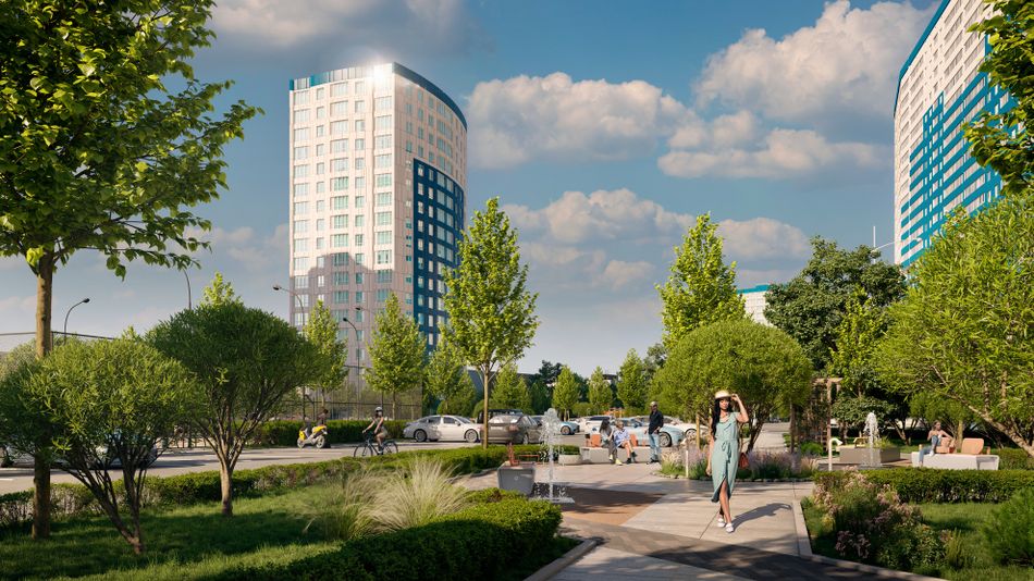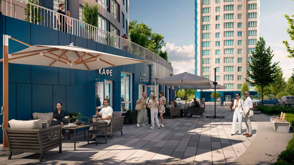Стильные двухцветные фасады, развитая инфраструктура, 2 детских садика и школа на территории комплекса. Квартиры с собственными террасами и шикарным видом на набережную!