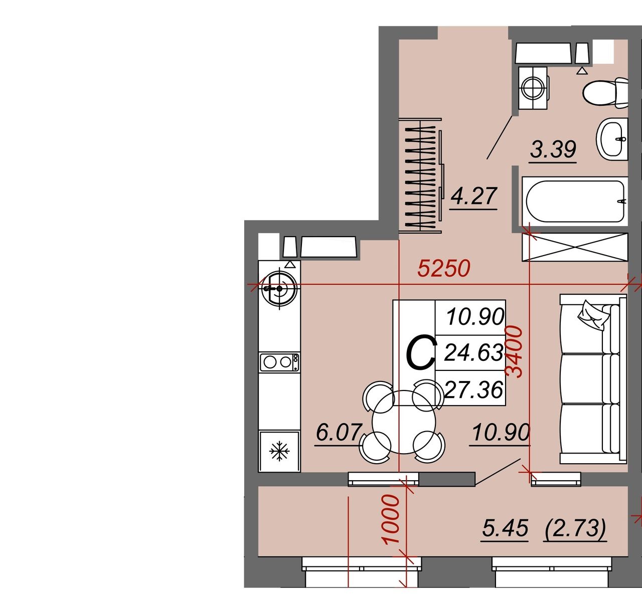 Студия | 27 - 28 м² | 4,6 - 4,8 млн ₽ |