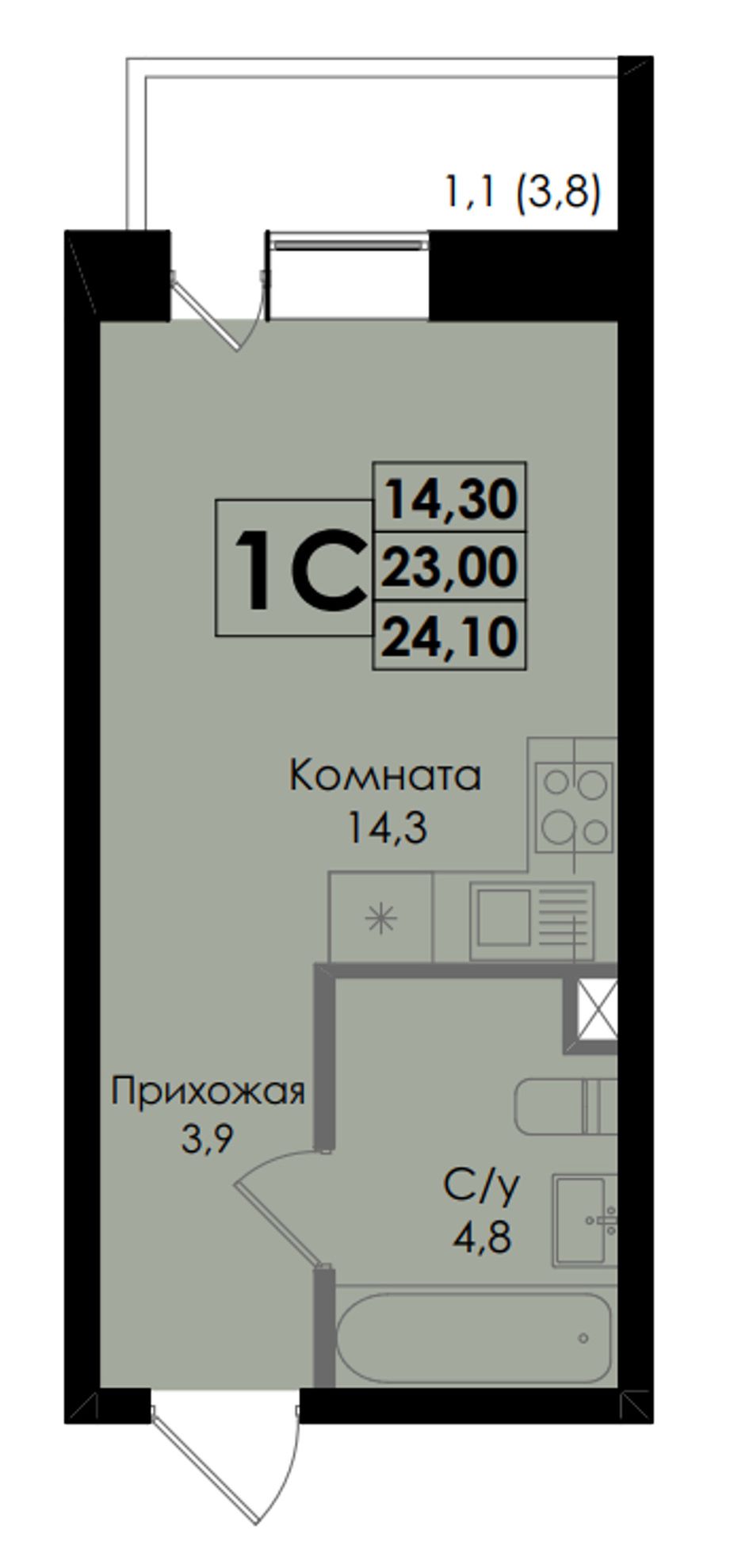 Общая площадь24,1 м²