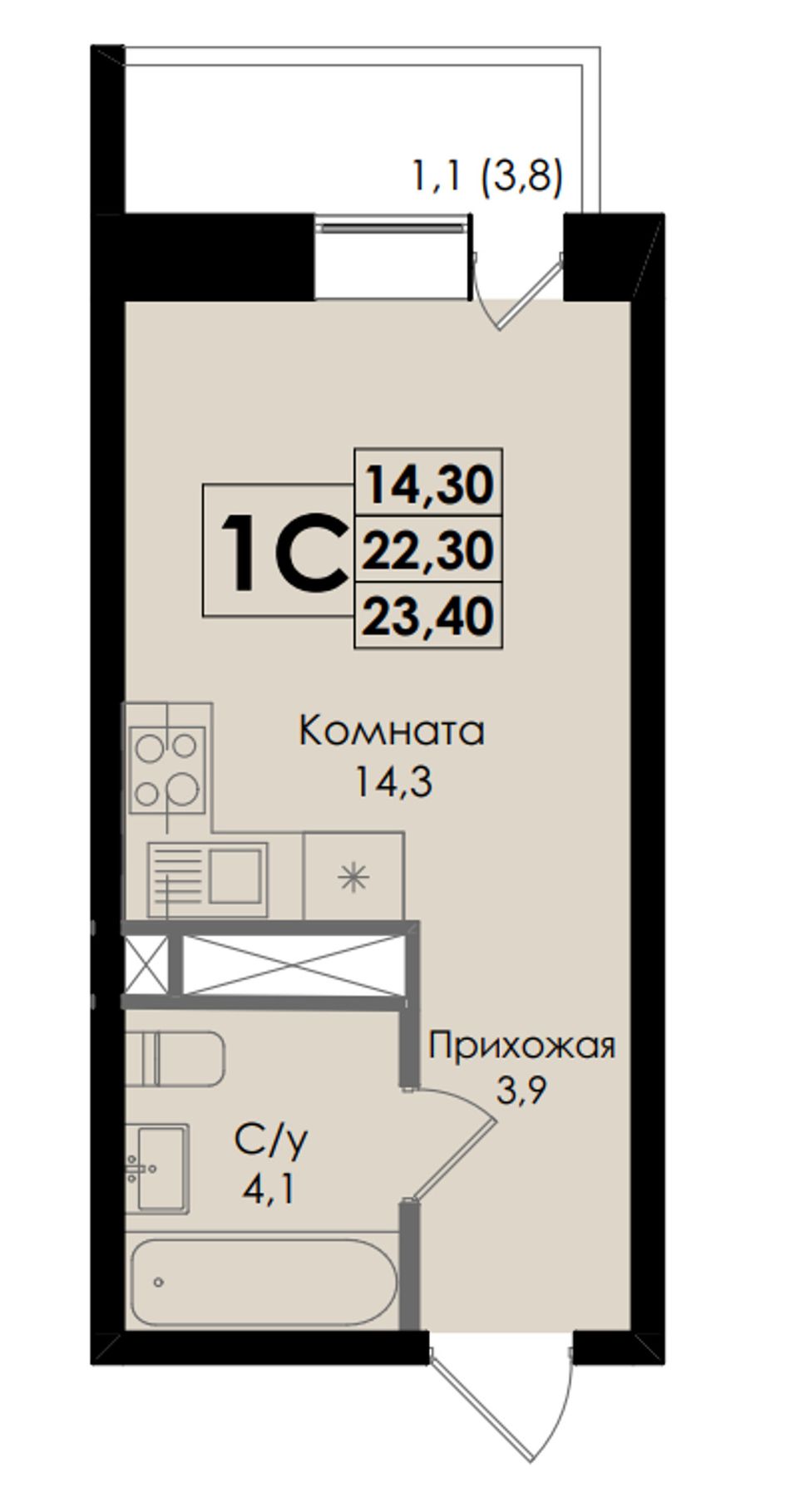 Студия — 23,4 м² 16/22 эт. в Ботаника