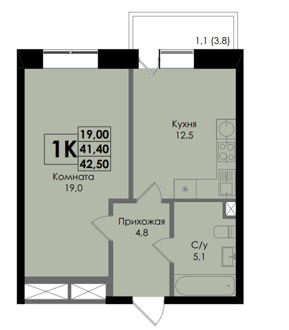 Общая площадь42,5 м²