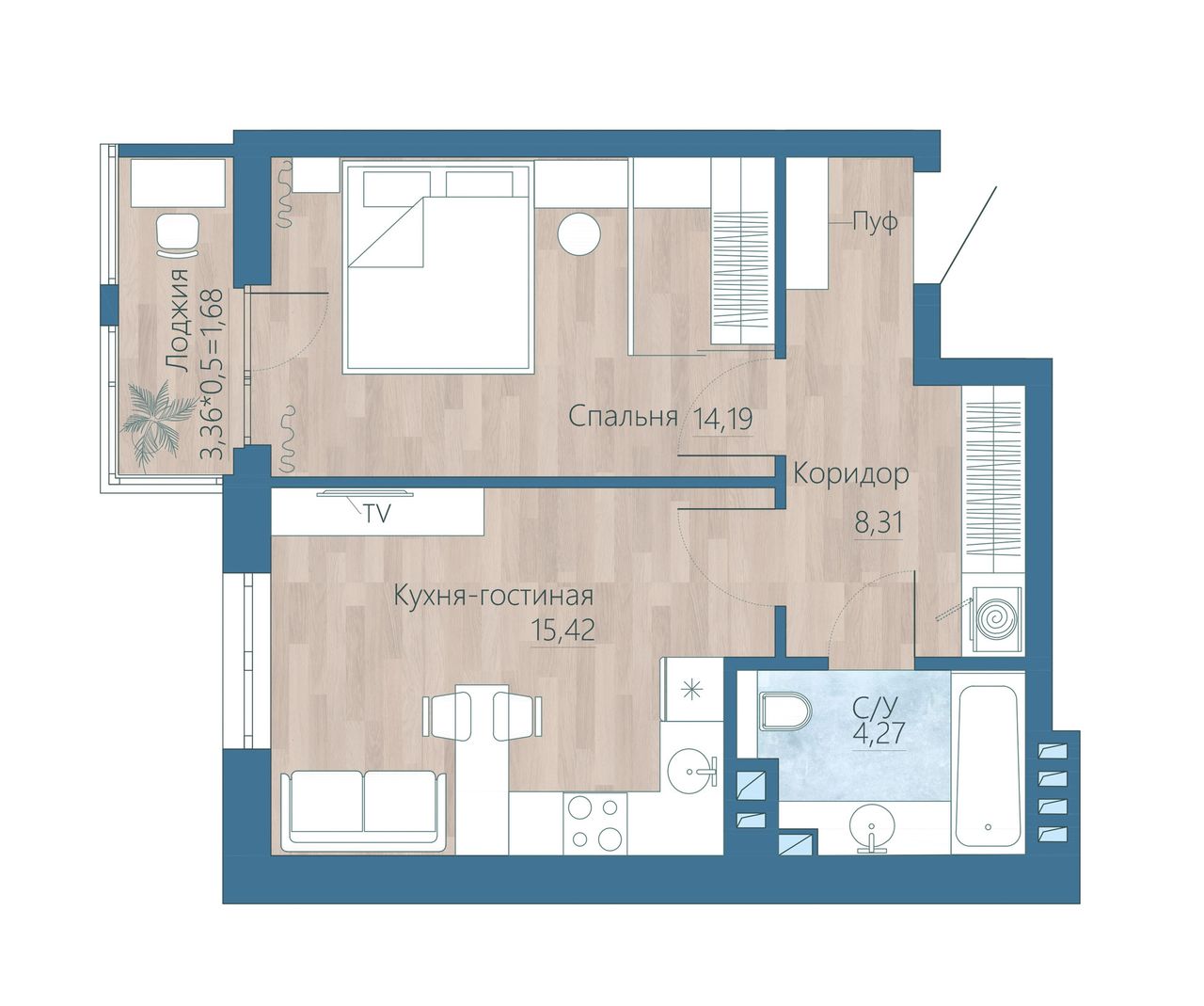 Общая площадь44,12 м²