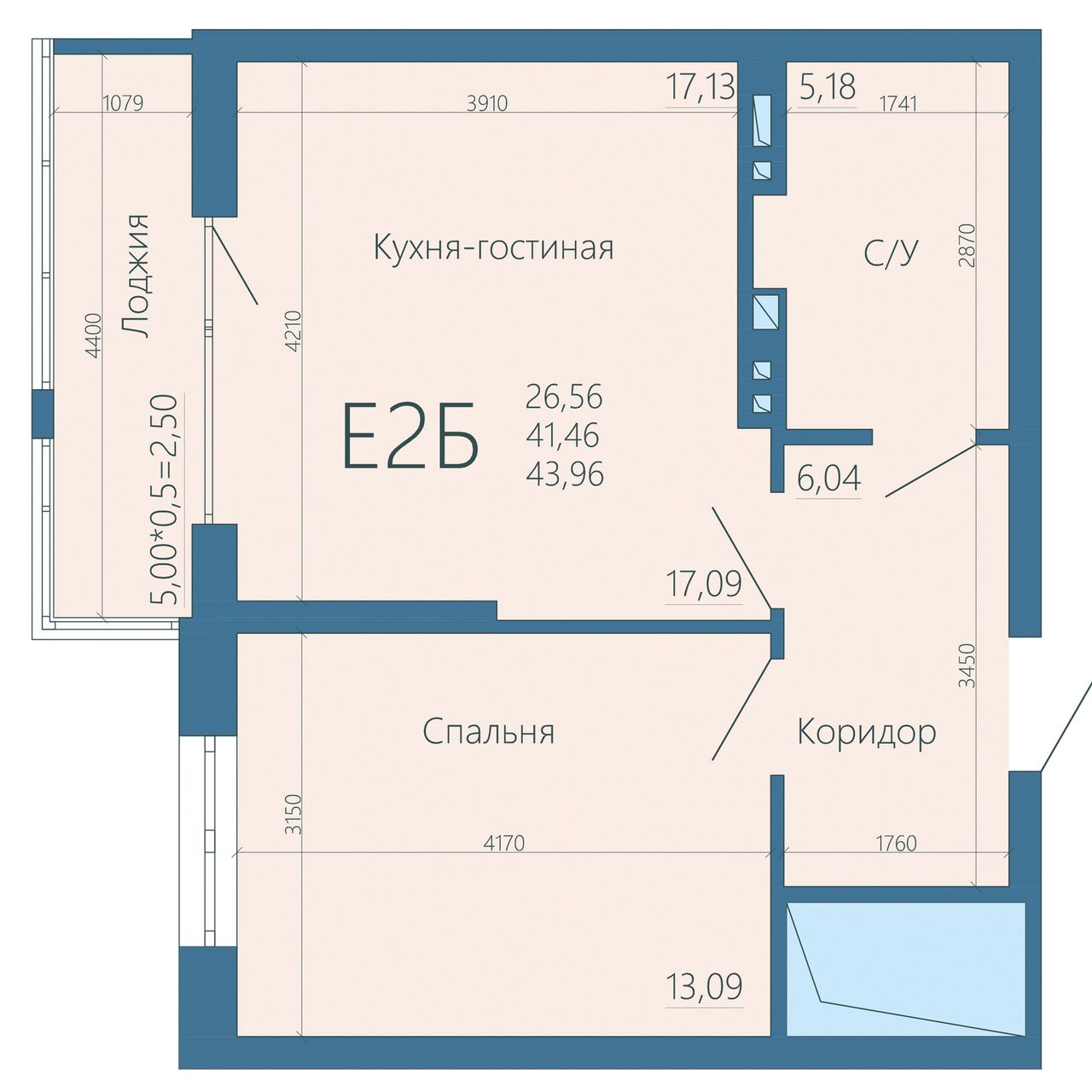 1-комнатная — 44,45 м² 2/15 эт. в Наследие