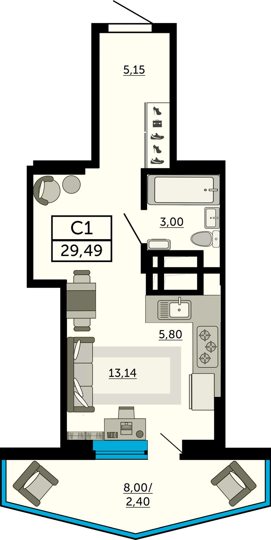 Общая площадь29,6 м²
