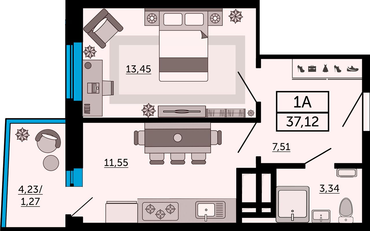 Общая площадь37,3 м²