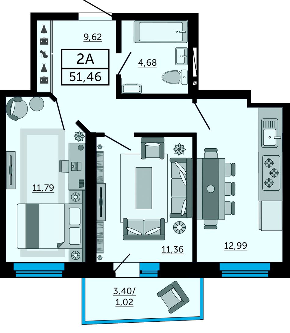 Общая площадь51,7 м²