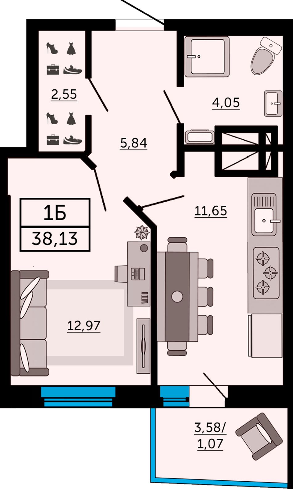 Общая площадь38,3 м²