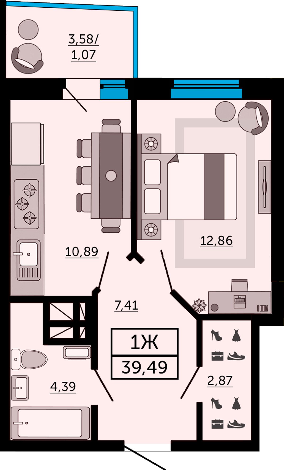 | 1-комн. | 39 - 42 м² | 4,2 - 6,4 млн ₽ |