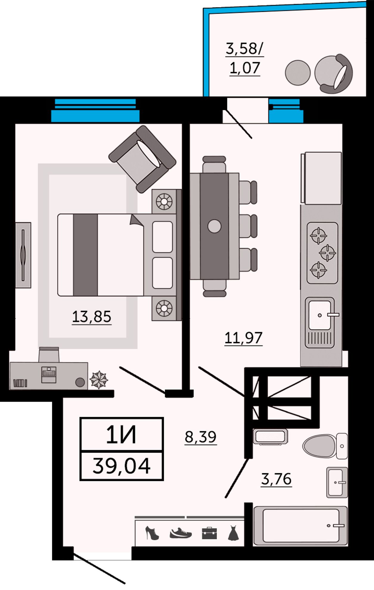 | 1-комн. | 39 - 42 м² | 4,2 - 6,4 млн ₽ |