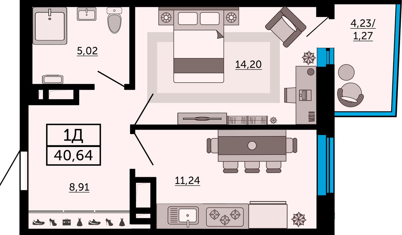 | 1-комн. | 38 - 42 м² | 4,1 - 6,4 млн ₽ |