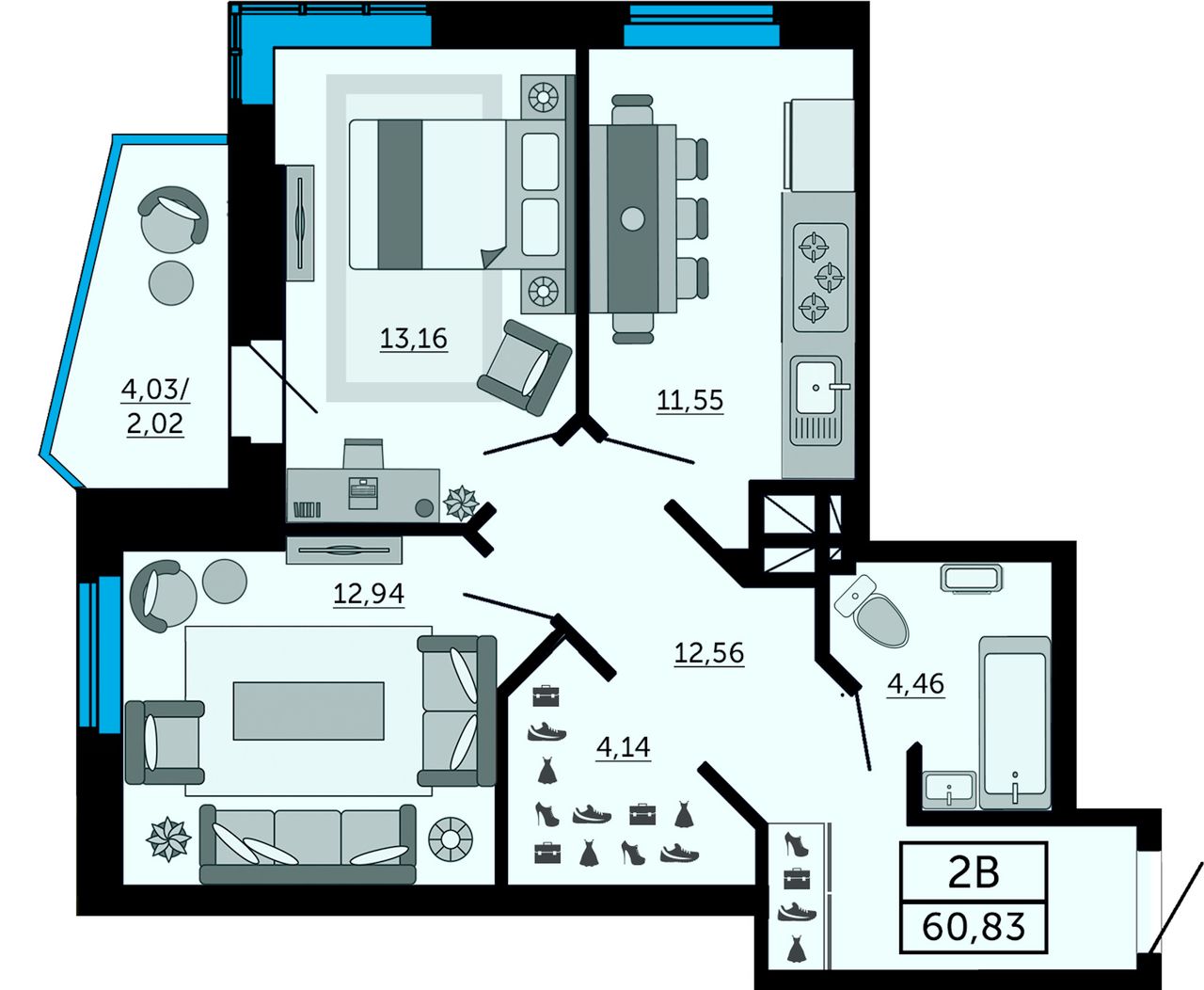 Общая площадь60,9 м²