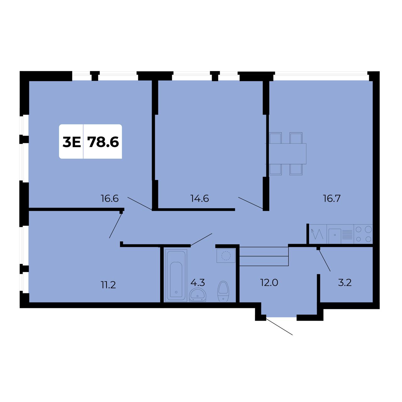 3-комнатная — 78,6 м² 1/17 эт. в Норд-Премьер