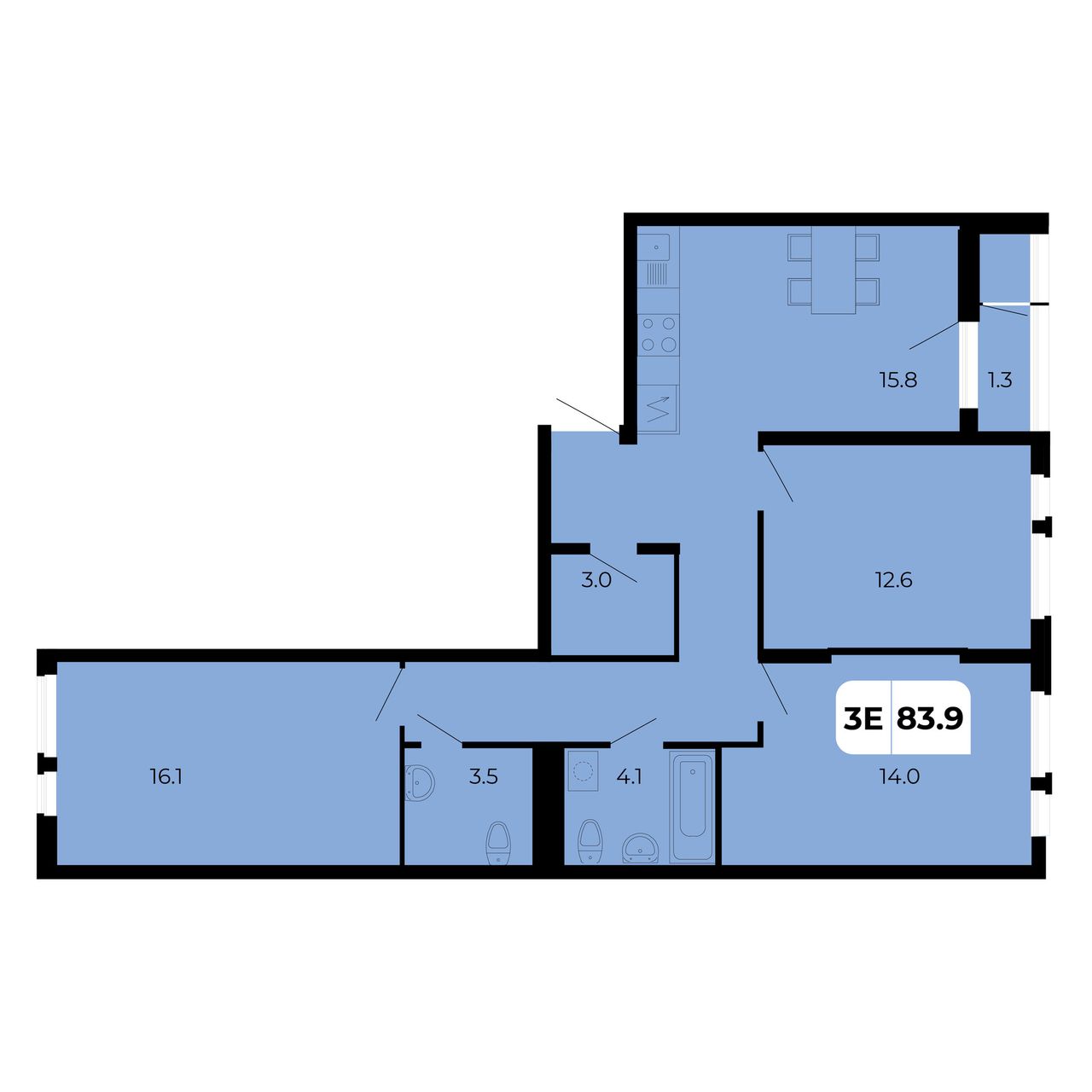 3-комнатная — 83,9 м² 9/17 эт. в Норд-Премьер