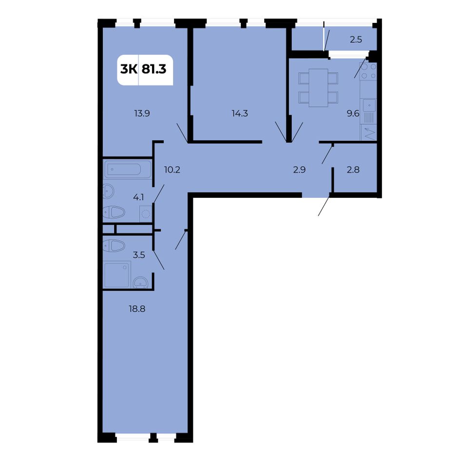 Общая площадь81,3 м²