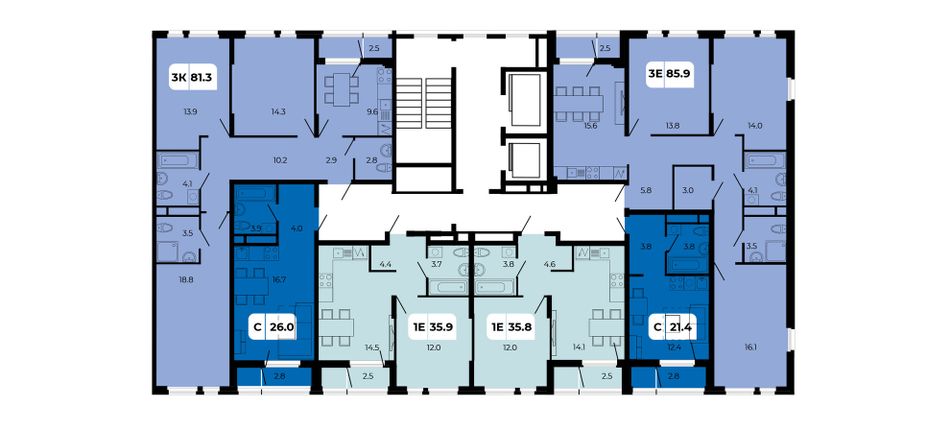 | 3-комн. | 79 - 89 м² | 9,6 - 10,9 млн ₽ |