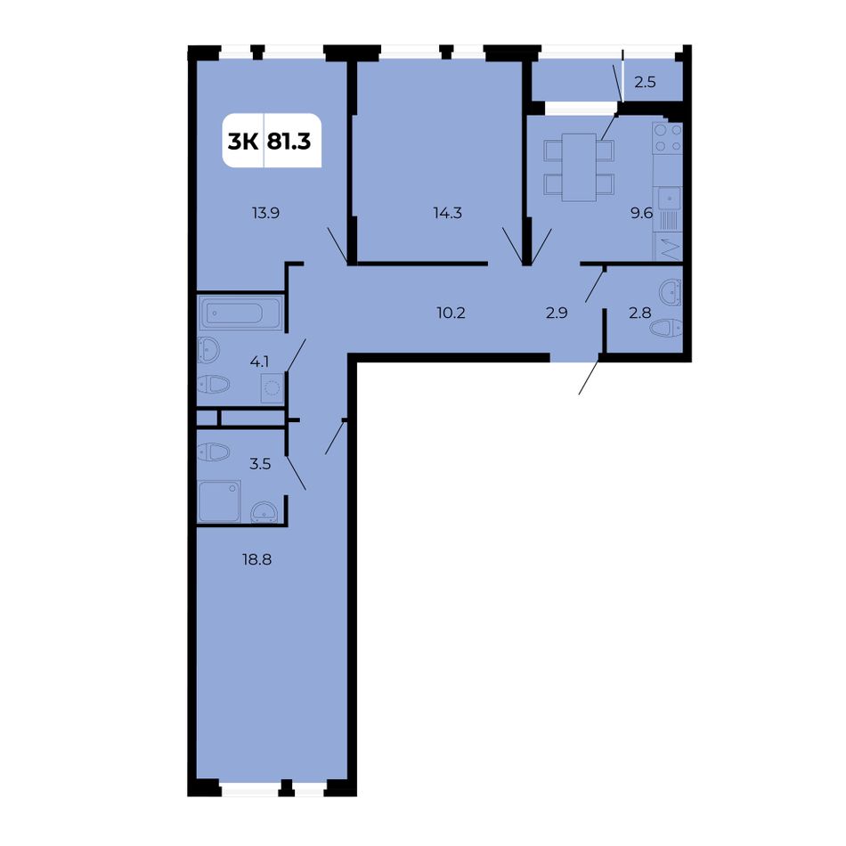 3-комнатная — 81,3 м² 14/17 эт. в Норд-Премьер