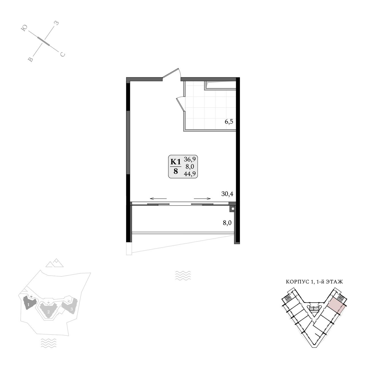 Общая площадь44,9 м²