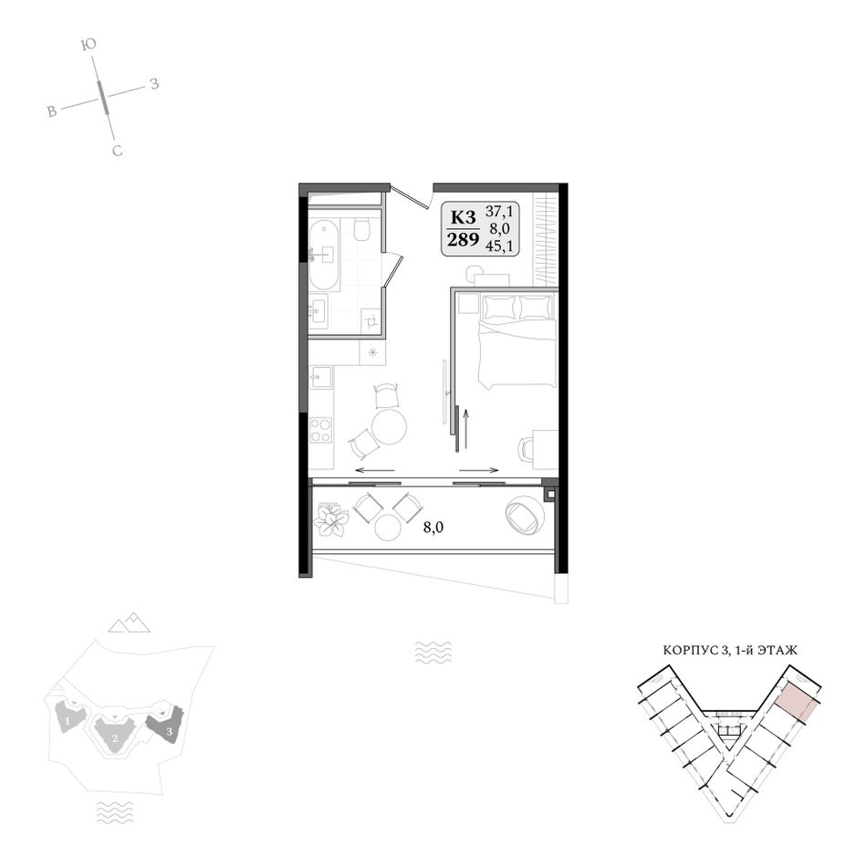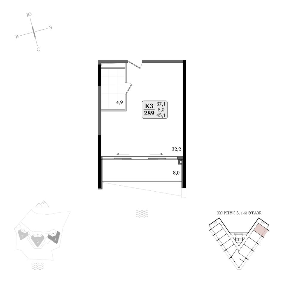 Продаются апартаменты № 3/289 площадью 45,1 м2