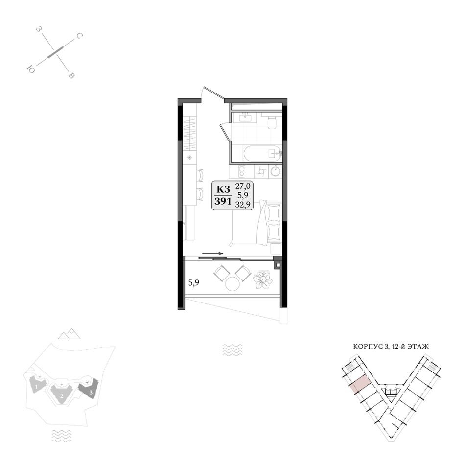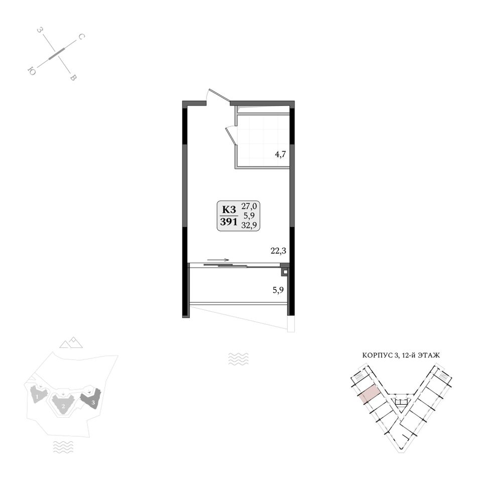 Продаются апартаменты № 3/391 площадью 32,9 м2