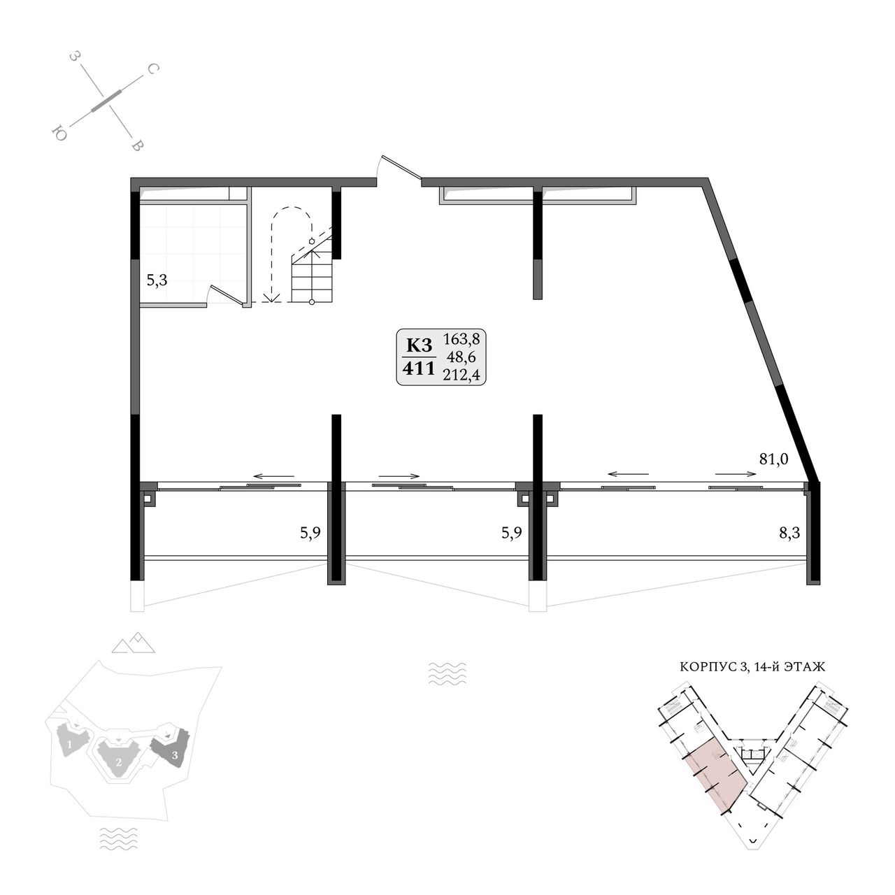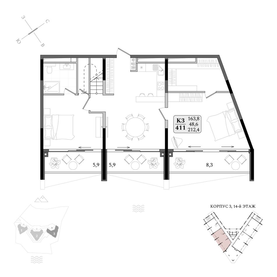 Продаются апартаменты № 3/411 площадью 212,4 м2