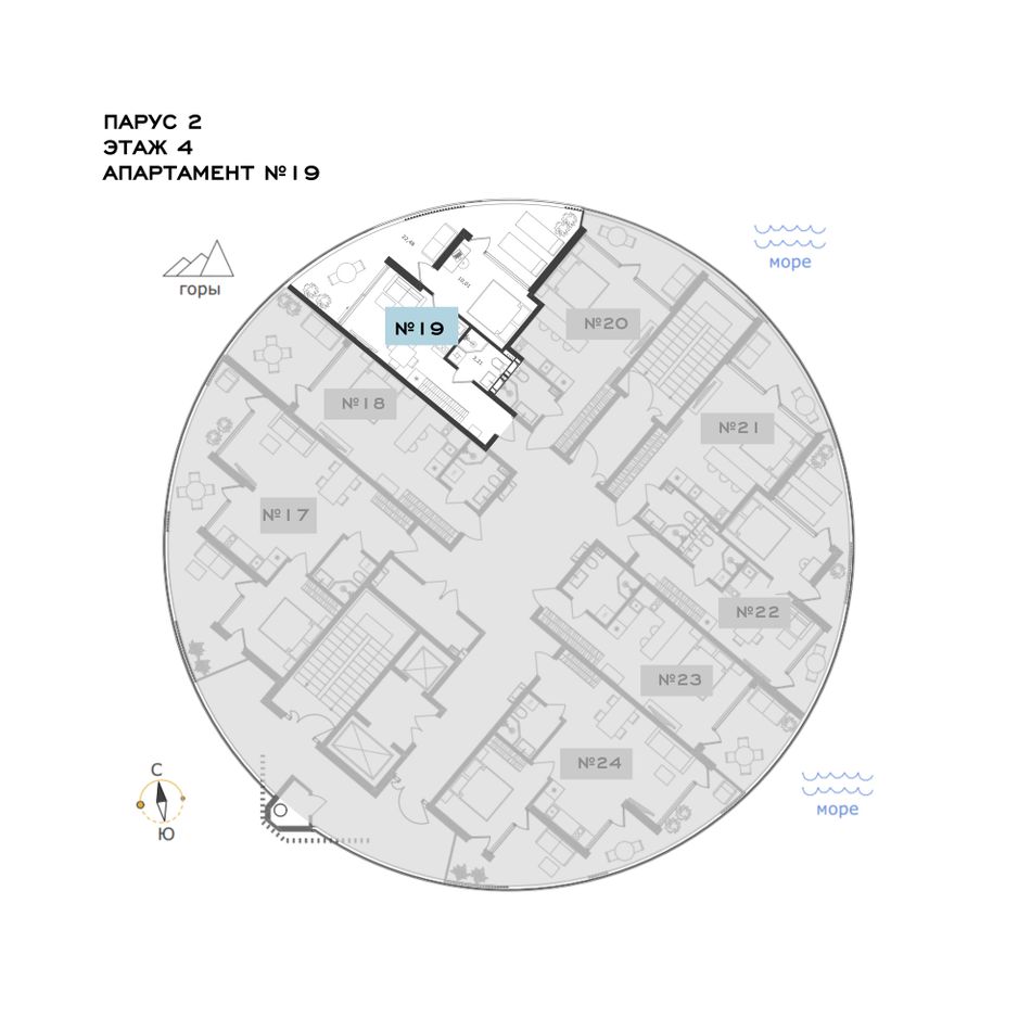 Продаются апартаменты общей площадью 54,32 м2 в премиальном гостиничном комплексе апартаментов «Паруса мечты» в историческом районе г. Алушты.