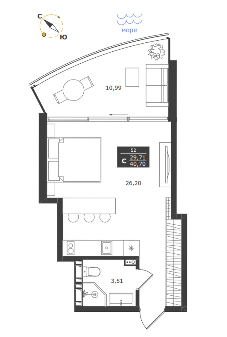 Студия — 40,7 м² 8/11 эт. в Паруса мечты