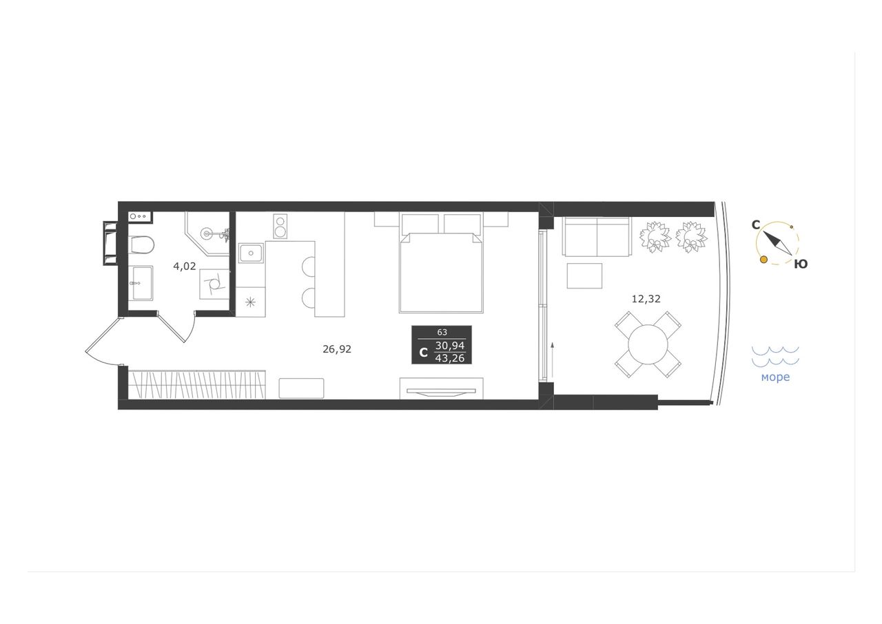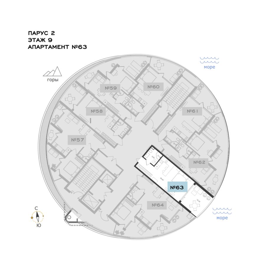 Студия — 43,26 м² 9/11 эт. в Паруса мечты