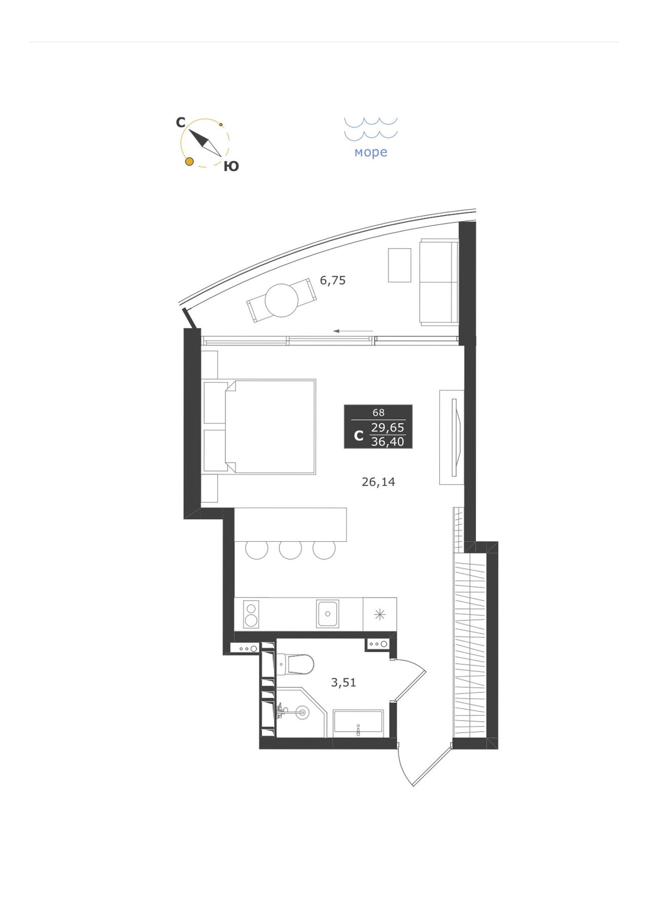 Студия — 36,4 м² 10/11 эт. в Паруса мечты