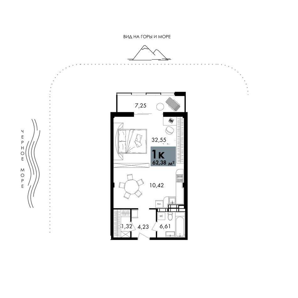 1-комнатная — 62,38 м² 3/12 эт. в Park Plaza (Парк Плаза)